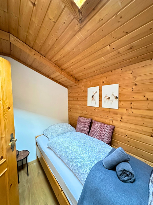 Bedroom with single bed (90 x 200) and private sauna.